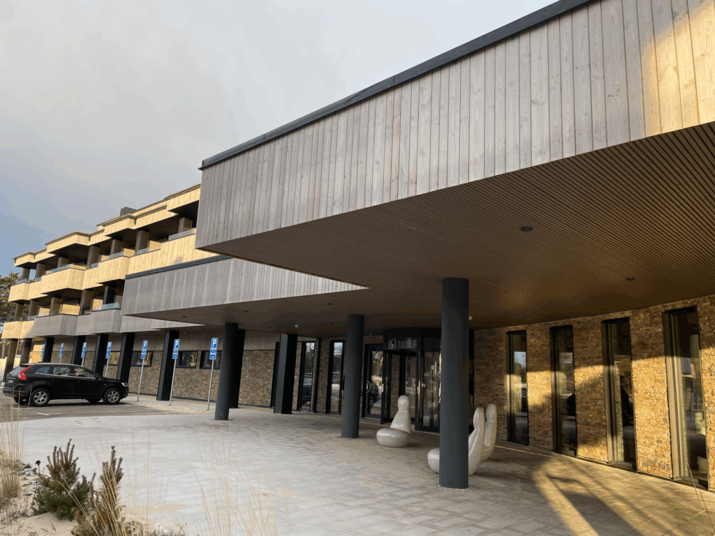 Skräddarsydd spaltpanel ute och inne till Åhus Seaside Här har vi via Woodify levererat en utvändig spaltpanel i gran där