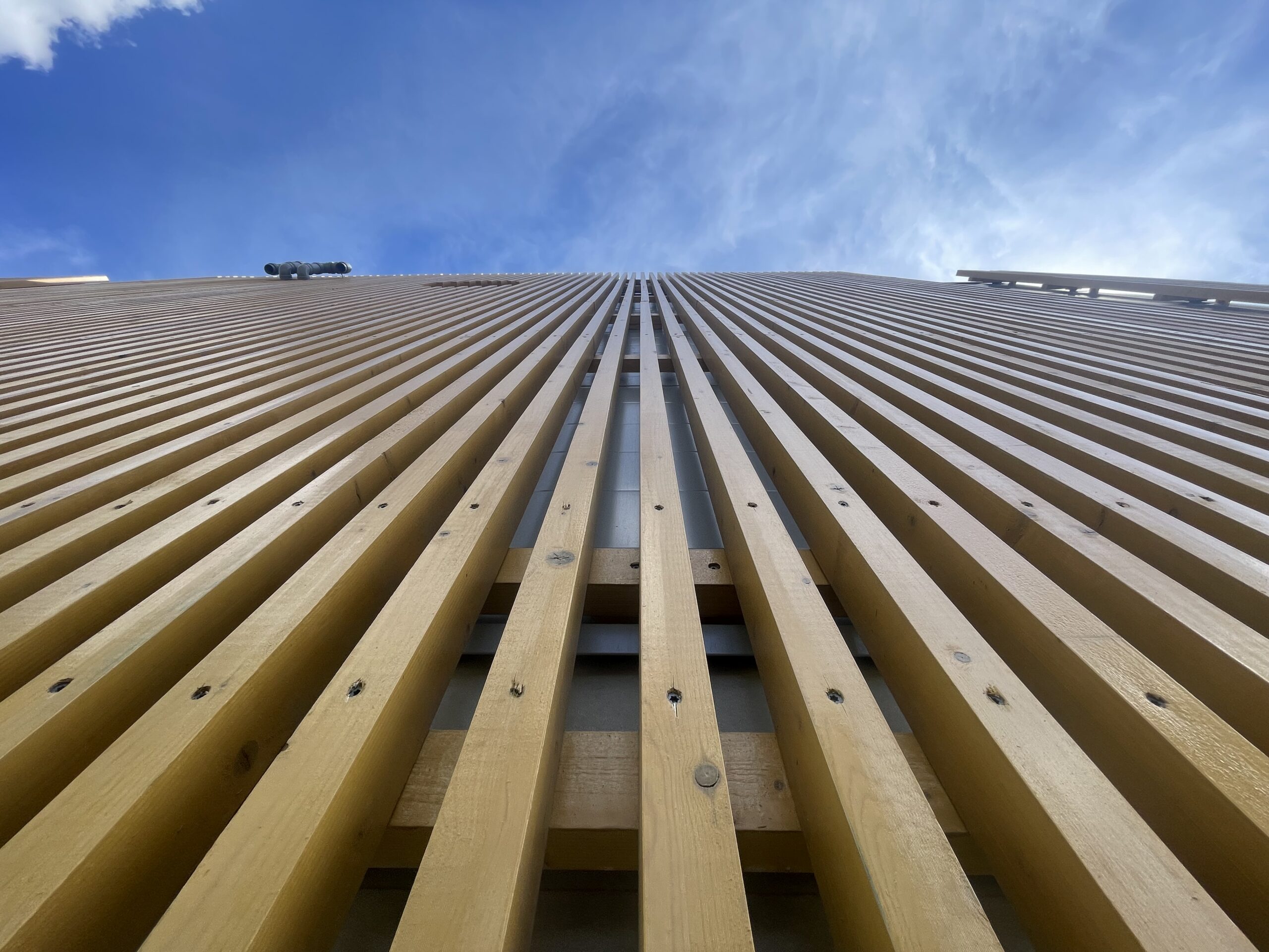 Vi har levererat ett projekt genom Woodify där vi har använt brandimpregnerad gran i både vanlig panel och spaltpanel. Materialet har därefter ytbehandlats med Jotun Trebitt, vilket ger en slitstark och estetiskt tilltalande finish som samtidigt framhäver träets naturliga struktur och bidrar till ett långvarigt skydd mot väder och slitage.