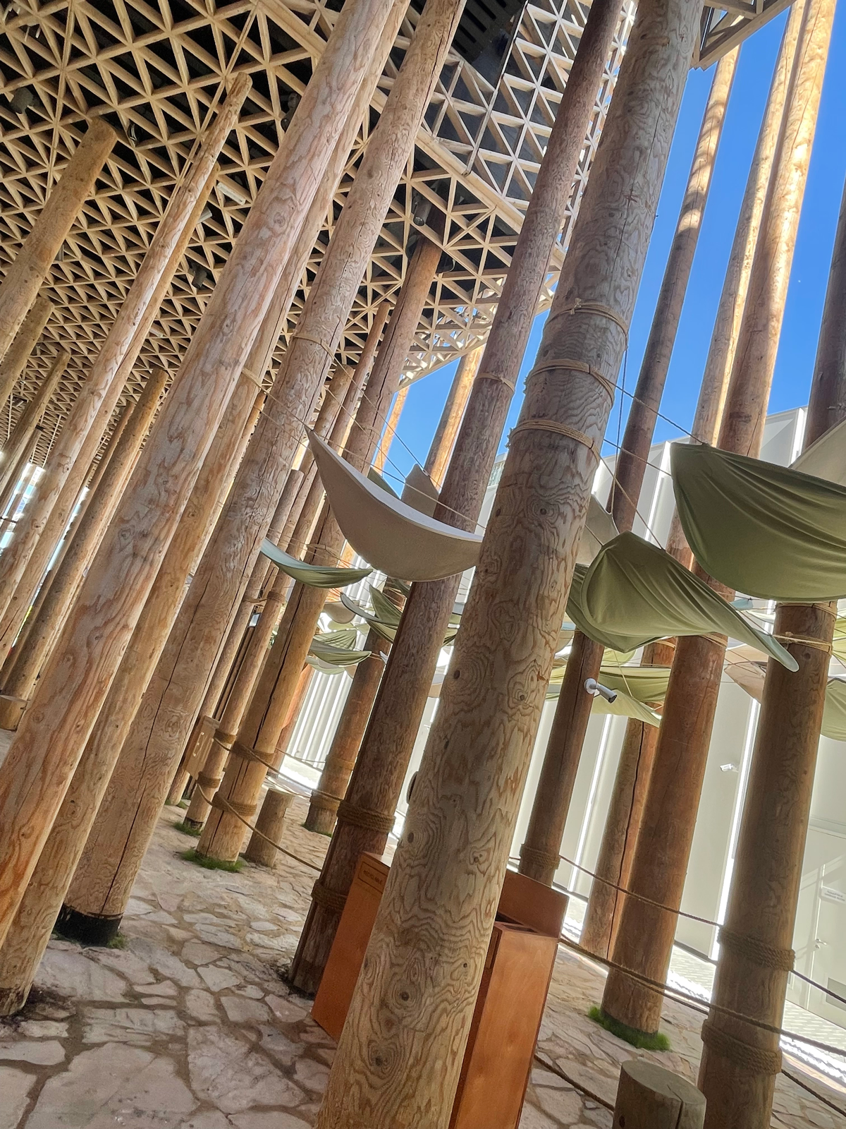 “The Swedish pavilion, called The Forest, was a spectacular structure combining wood and glass in a fascinating way. This innovative design created a forest-like atmosphere symbolizing Sweden’s deep connection to nature and its sustainability values. The Swedish pavilion covered an area of 3,000 square meters and was designed by the Swedish architectural firm Alessandro Ripellino Arkitekter, Studio Adrien Gardère, and Luigi Pardo Architetti.”