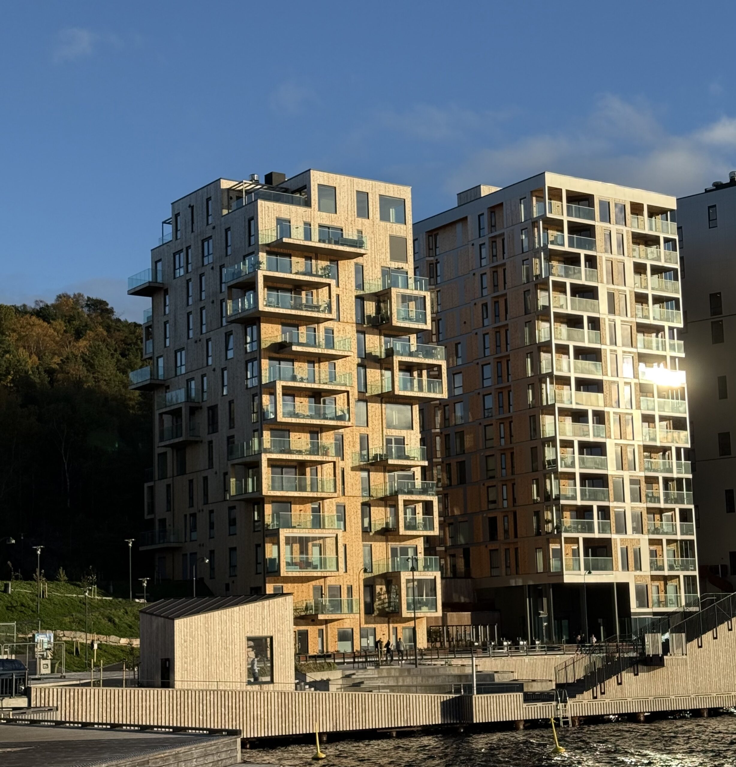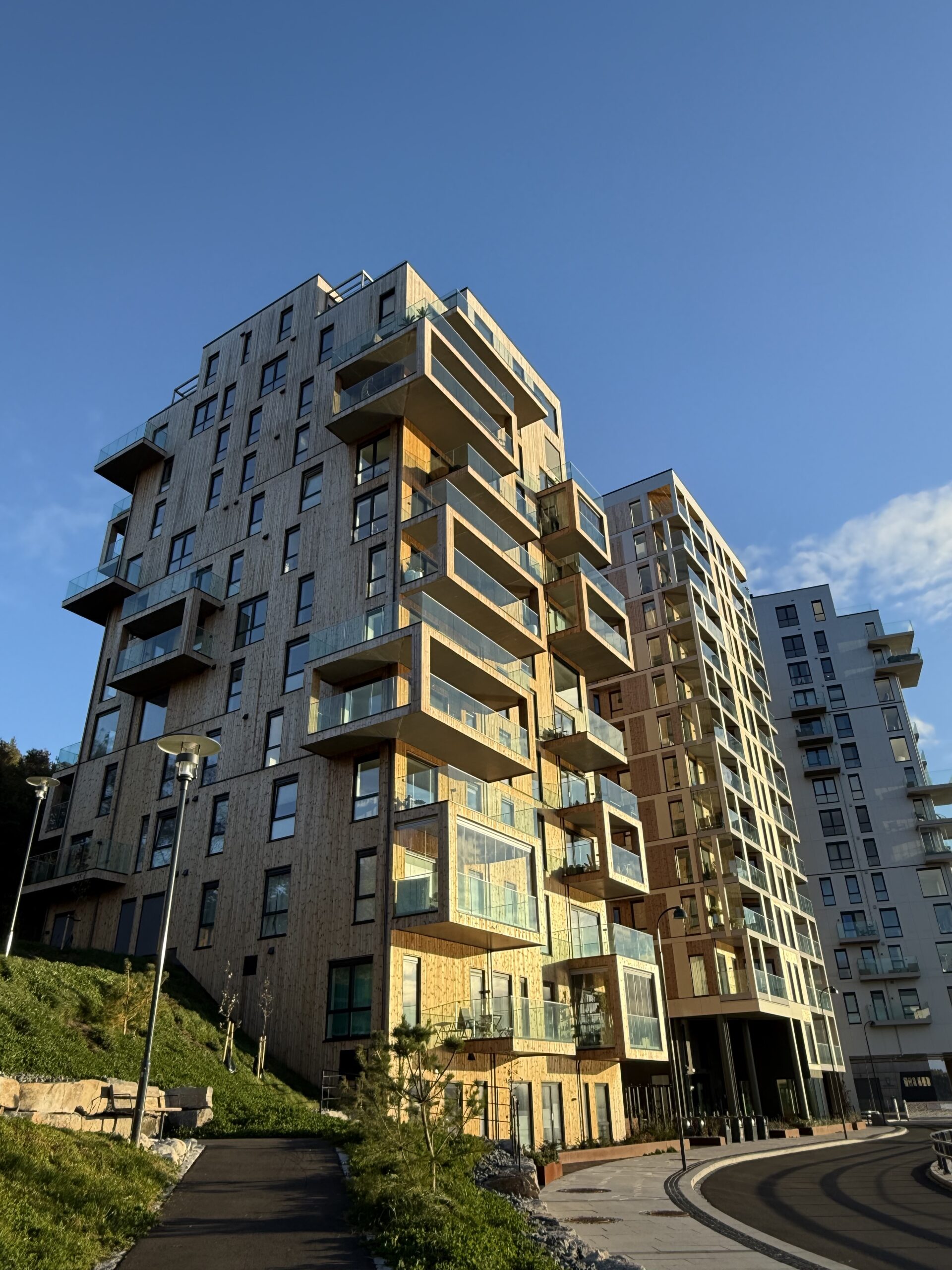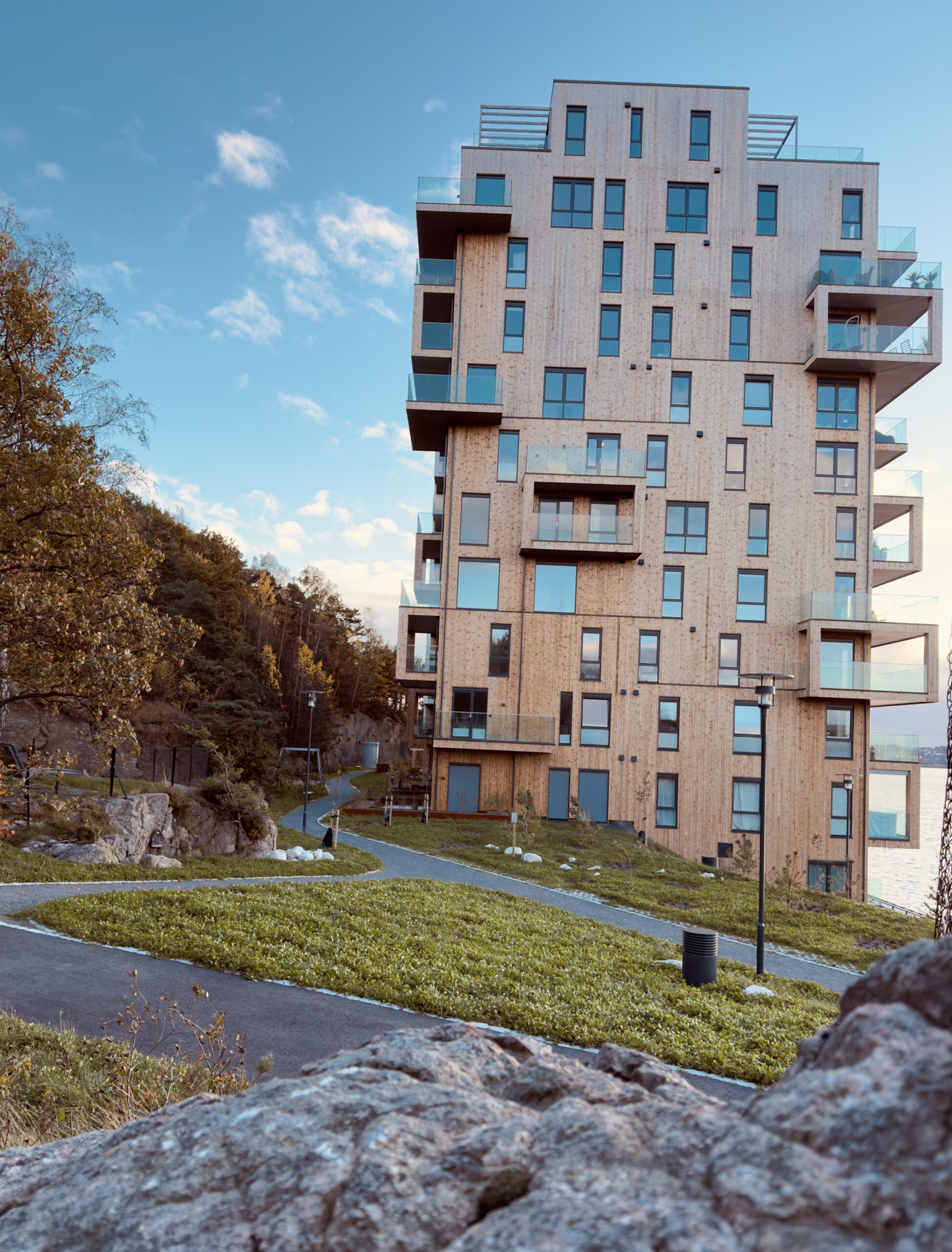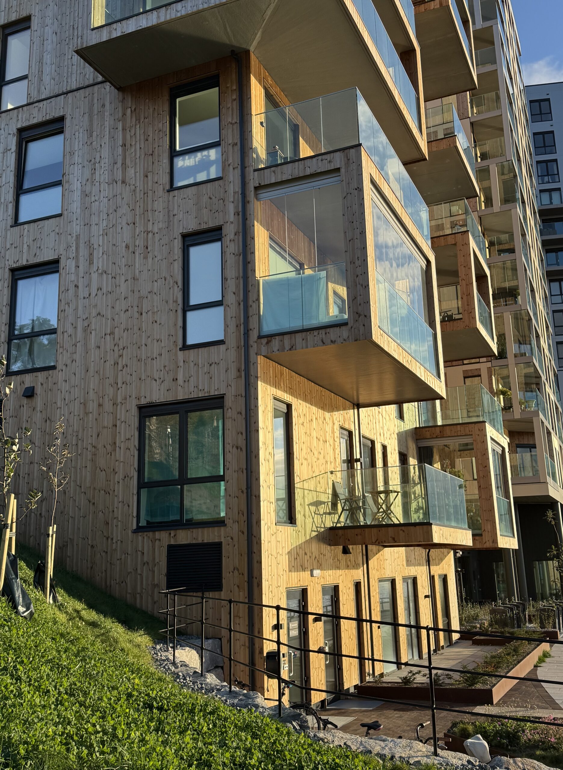 Till projektet ”De tre søstre” i Kristiansand har vi levererat Thermowood av furukvinta, brandimpregnerad med Woodsafe Fire X för att uppfylla de höga brandkrav som gäller för denna typ av byggnader.